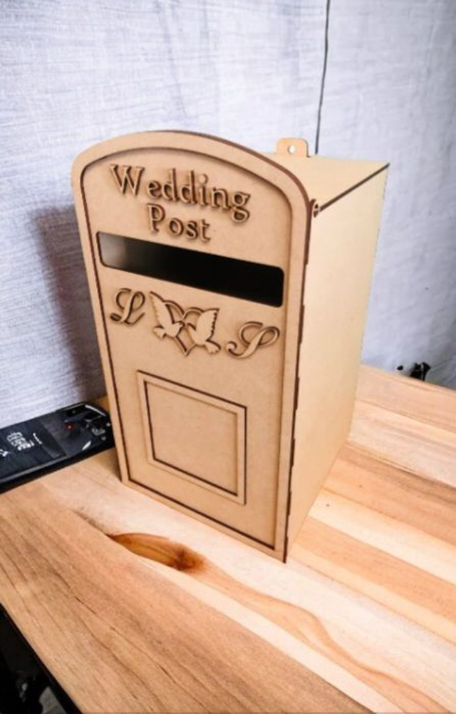 Design features either couples initials or text (Couples names & wedding date), doves & heart design, info box and frame and comes with lift up, lockable lid.