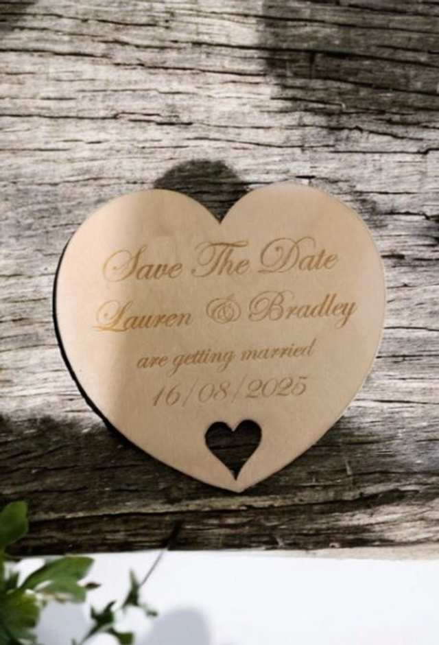 These beautiful fridge magnets are a lovely way to let your guests know of your intention to marry. Made from either 3mm Birch Plywood or 3mm White MDF they measure 80mm high and 86mm wide