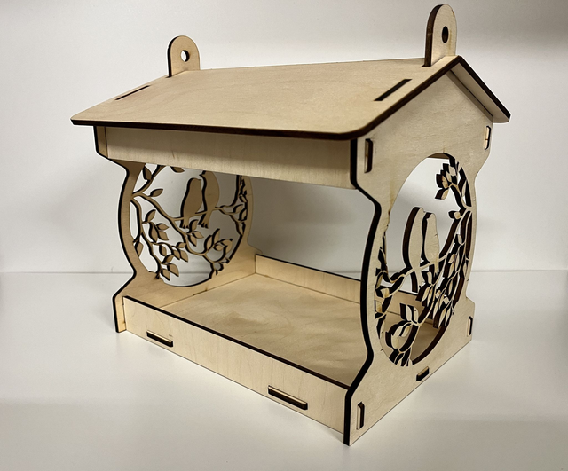 Our beautifully decorated bird feeder is laser cut from 4mm Plywood.